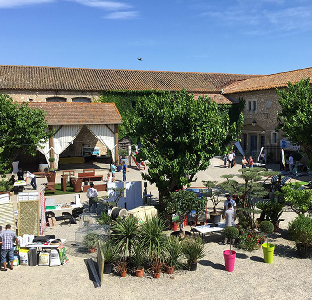 Dans sa cour et ses salles de réceptions entre Narbonne et Béziers.