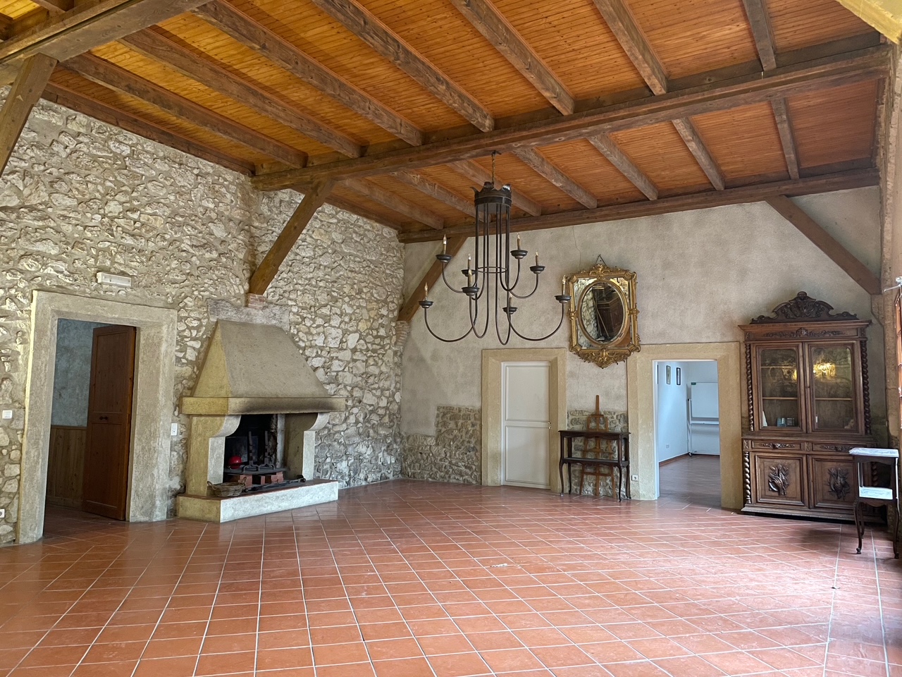 70 m². Pièce chaleureuse ornée d’une cheminée et empreinte de charme avec ses murs en pierre, elle dispose d’un accès direct sur la cour et la salle du Chai. La salle du Lustre offre de multiples possibilités : vestibule pour les réceptions et galas, salle de réunion, espace pour les cocktails…